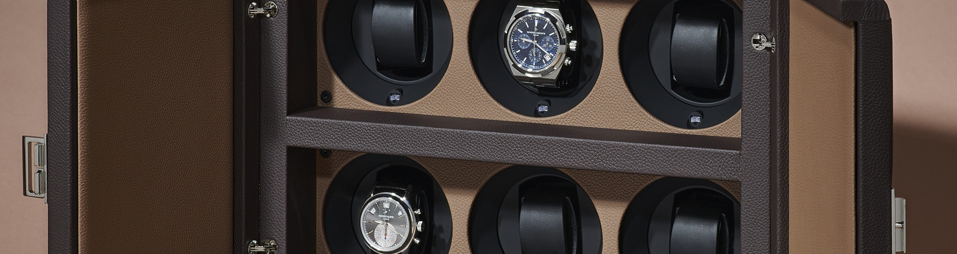 Since 1989, at the beginning of his new activity, Sandro Colarieti decided to evolve the cases he created to store his watches by producing a small series of watch winders for himself and his friends. His objective: simulate the natural movements of the wrist to maintain his watches and keep them on time. As a great Patek Philippe watch collector, he presented his invention to the famous watchmaking house in 1990, which decided, after a year of testing, to order 500 watch winders. Thanks to this collaboration, Scatola quickly became known to collectors all over the world. The winder was born and approved! The enthusiasm of collectors is constantly growing and their expectations are more and more demanding in terms of personalization and capacity. Scatola del Tempo loves challenges! The range is extended with custom-made items capable of holding up to hundreds of watches.